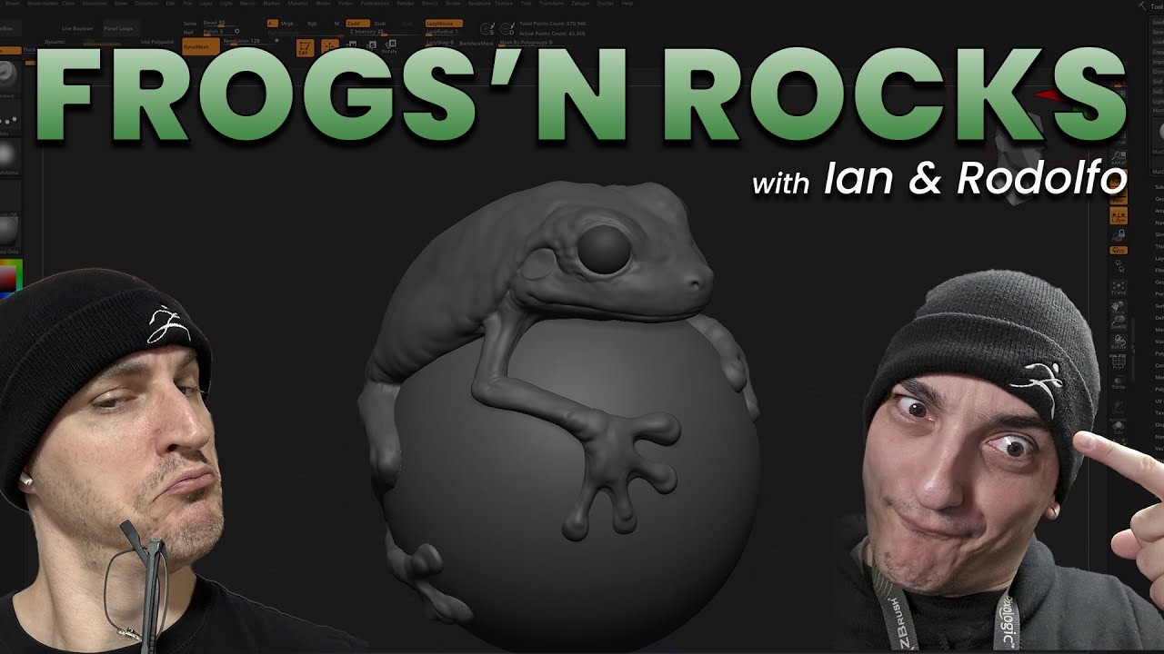 As promised at the ZBrush Summit, the ZBrush team is making it a thematic stream session, where Rodolfo can go on and on about rocks, boulders & pebbles, while Ian will be (pond)ering his taste with frog characters